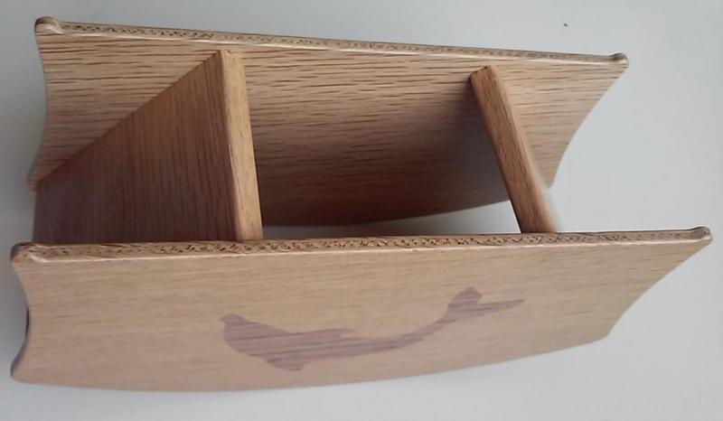 Two or three track cribbage boards inlaid with 3 ply veneer. A shallow perimeter cut exposes the middle ply. The example is a Walnut (top) and Sapele (outline) inlay. Available as a customized finished product (numerous options) and as DXF or Estlcam .e10 files for makers and DIY's.[ comment | link | top ]